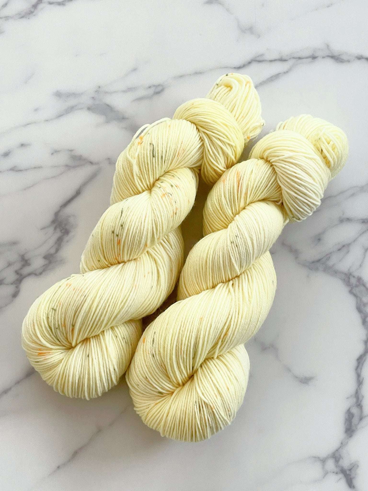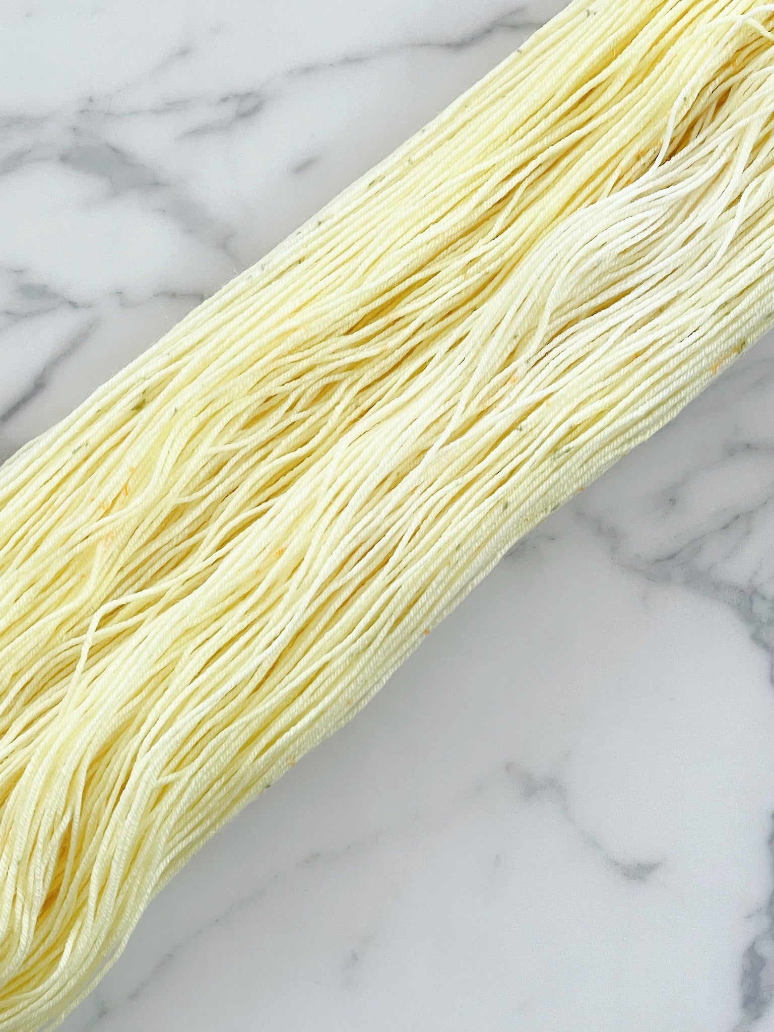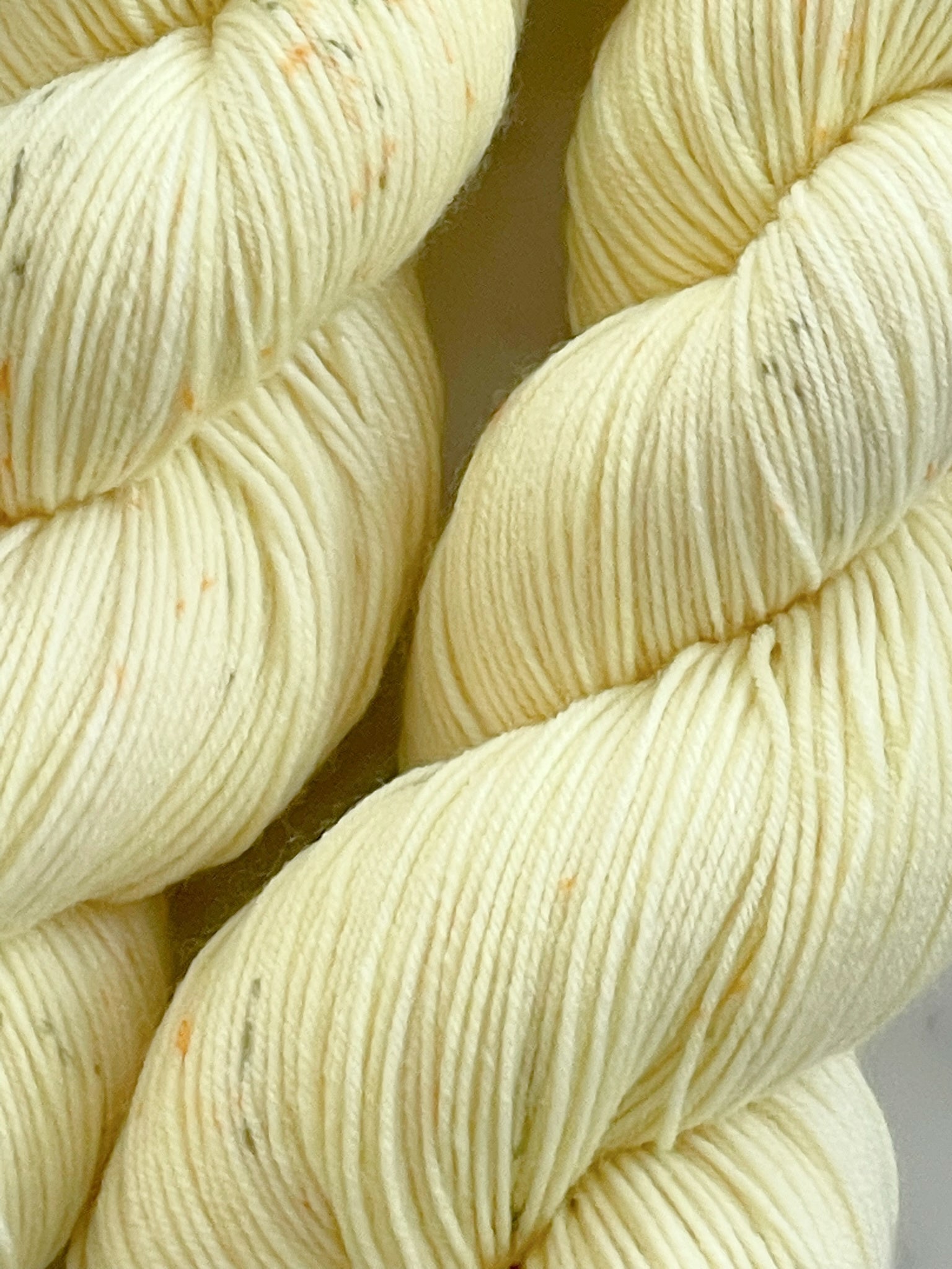 そんなタンポポのような淡い黄色に、優しいオレンジと緑の粒をごく控えめに散りばめました。
